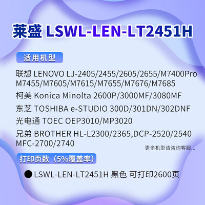 莱盛LT2451H粉盒 适用联想M7400pro粉仓LJ2405D 2455D 2605D 2655DN M7455DNF M7605D M7615D