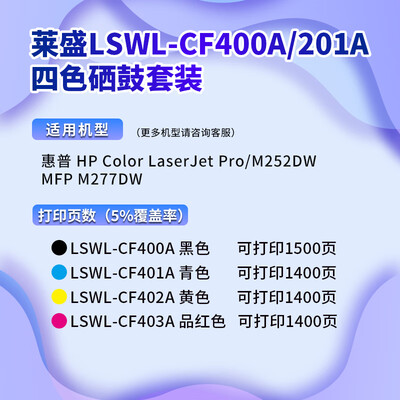 莱盛CF400A/201A四色硒鼓套装 适用于惠普HP m277dw M252 252N 252DN 252DW M277n