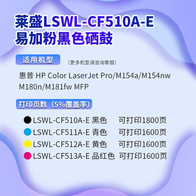 莱盛CF510A大容量易加粉硒鼓 黑色有芯片204a墨盒 适用惠普HP M154a M154nw