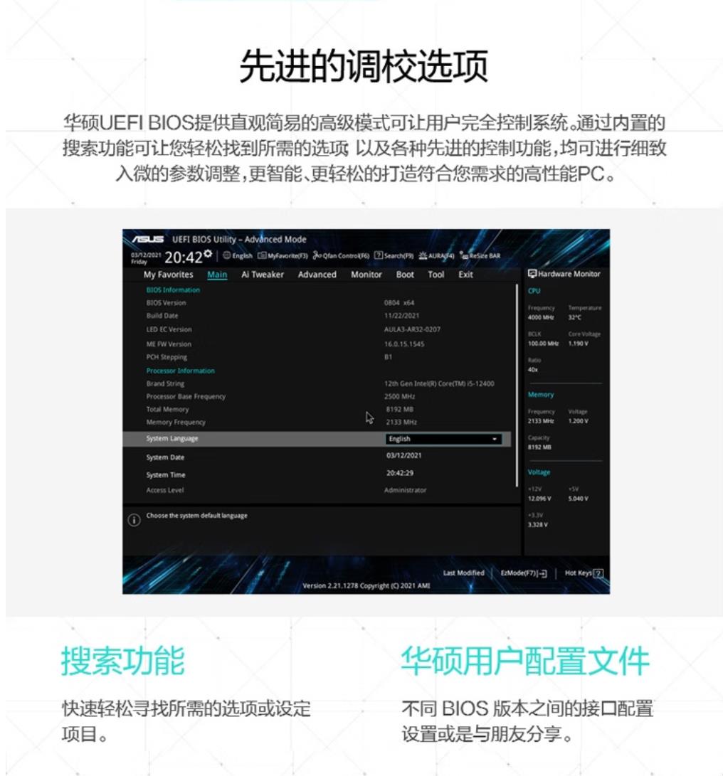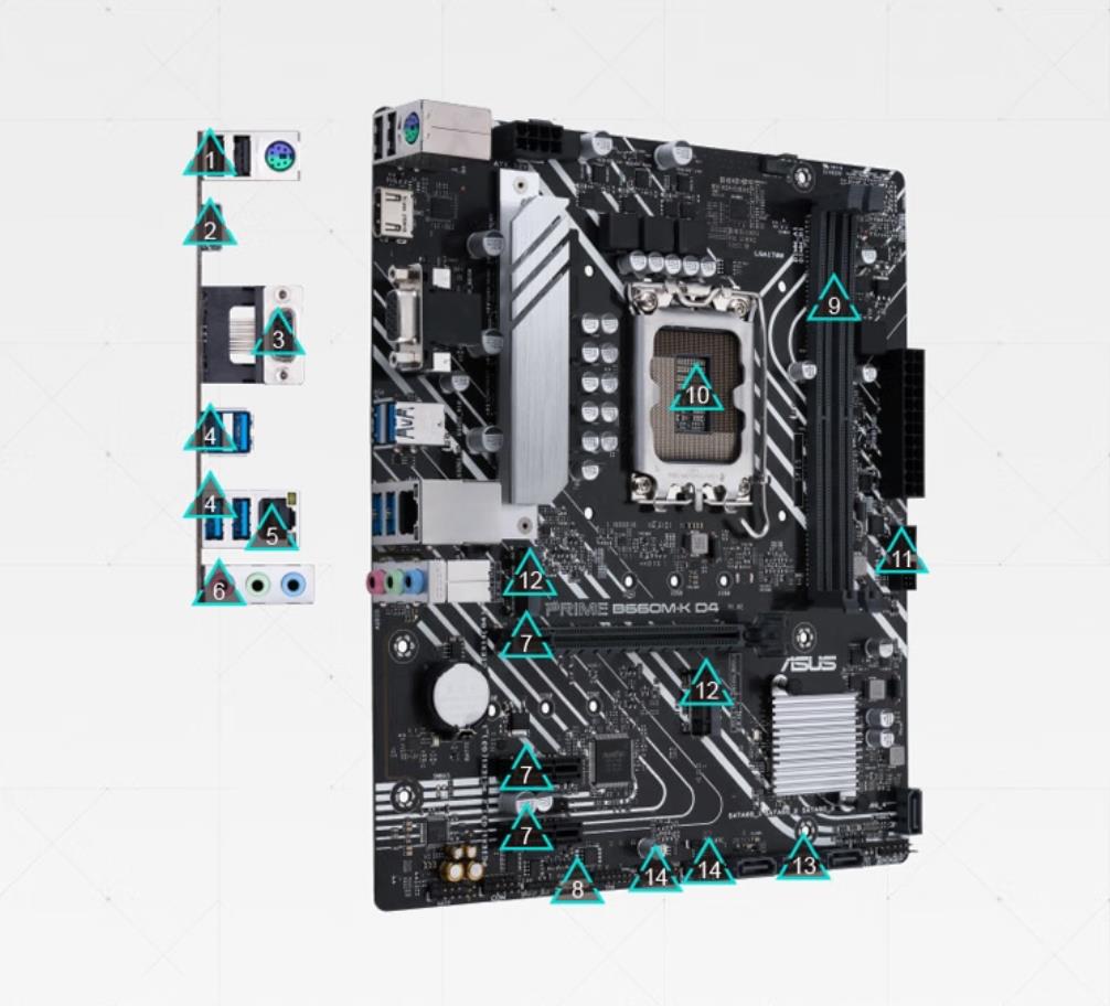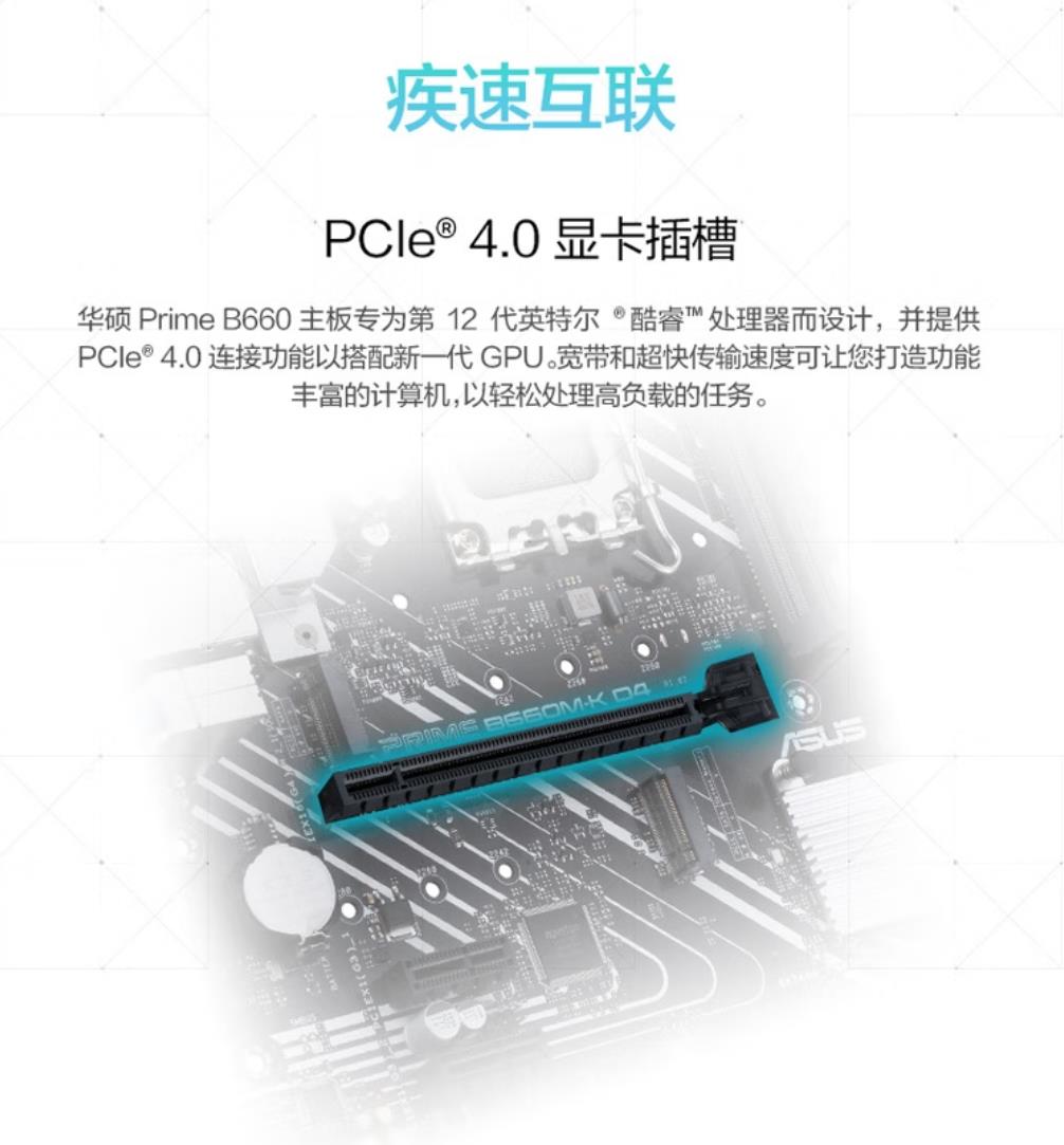 华硕(ASUS)PRIME B660M-K D4主板 支持 CPU 12700/12400F(Intel B660/LGA 1700)