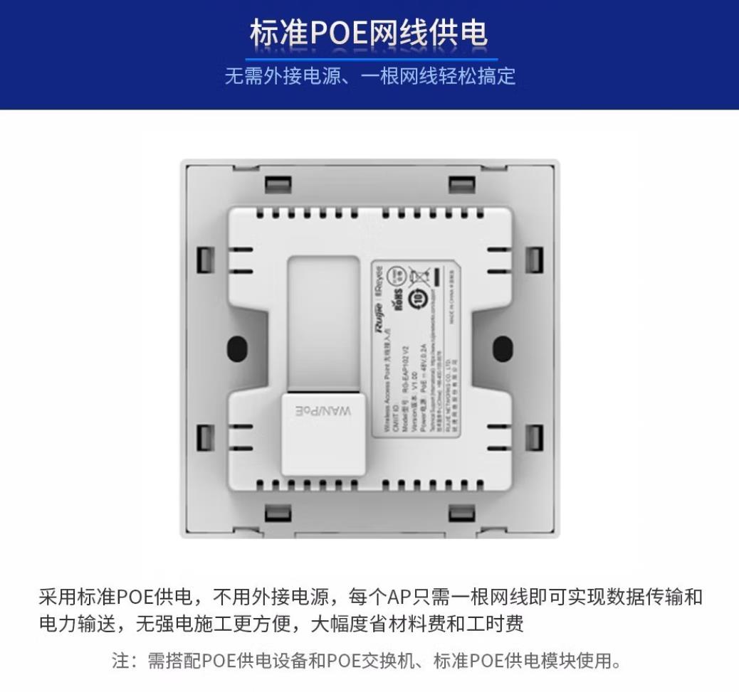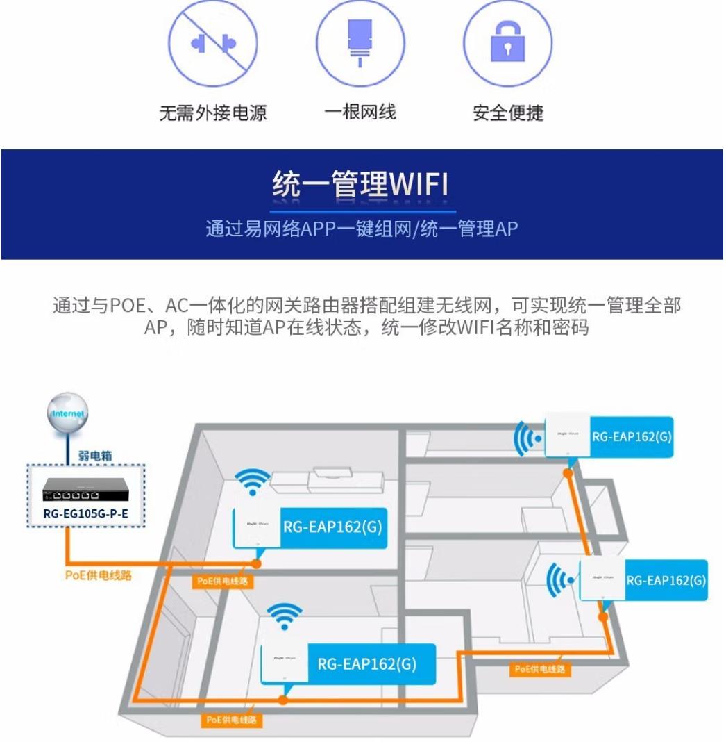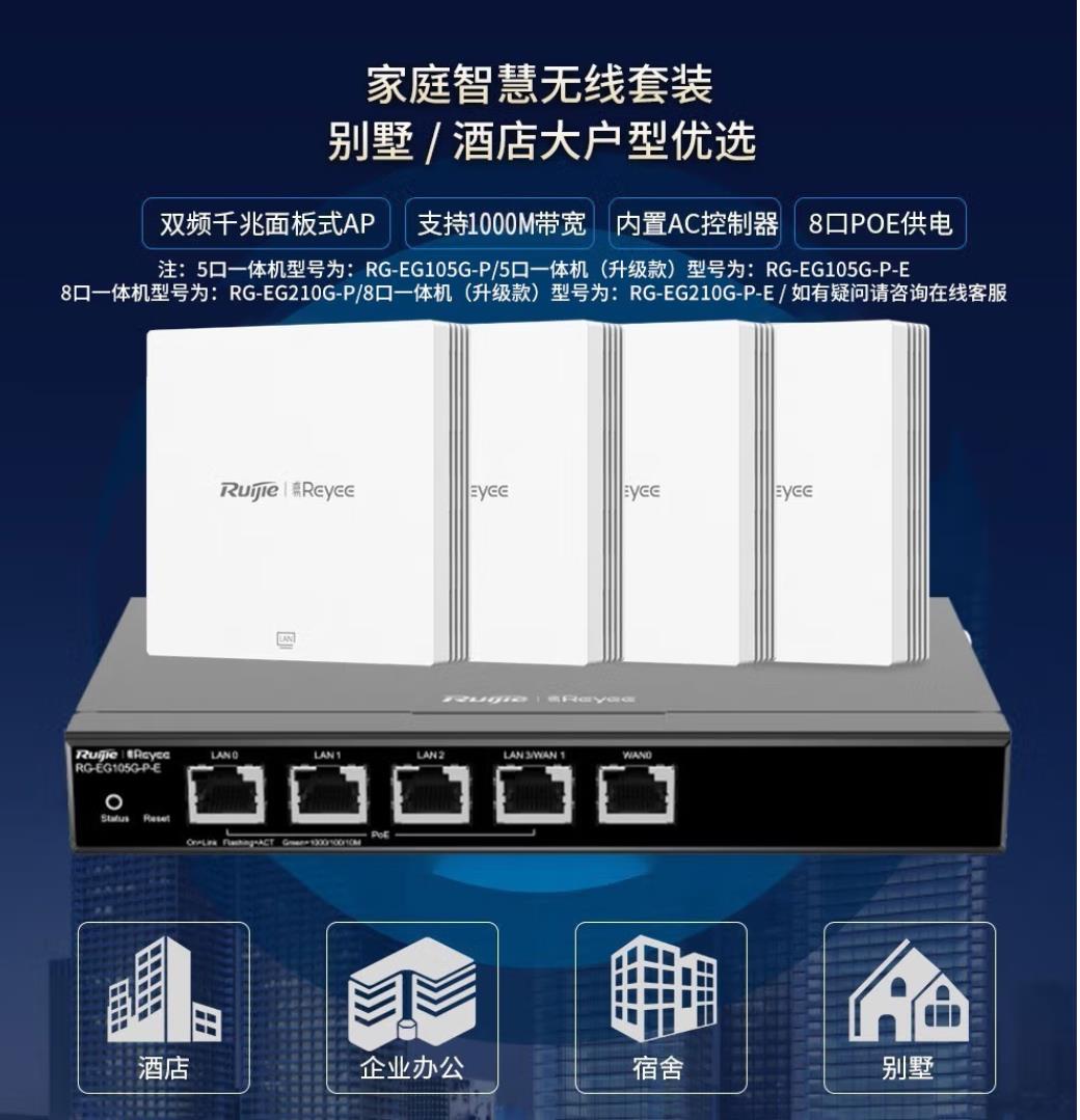 商品名称:锐捷(Ruijie) 无线ap全屋wifi RG-EG105G-P 5口一体机