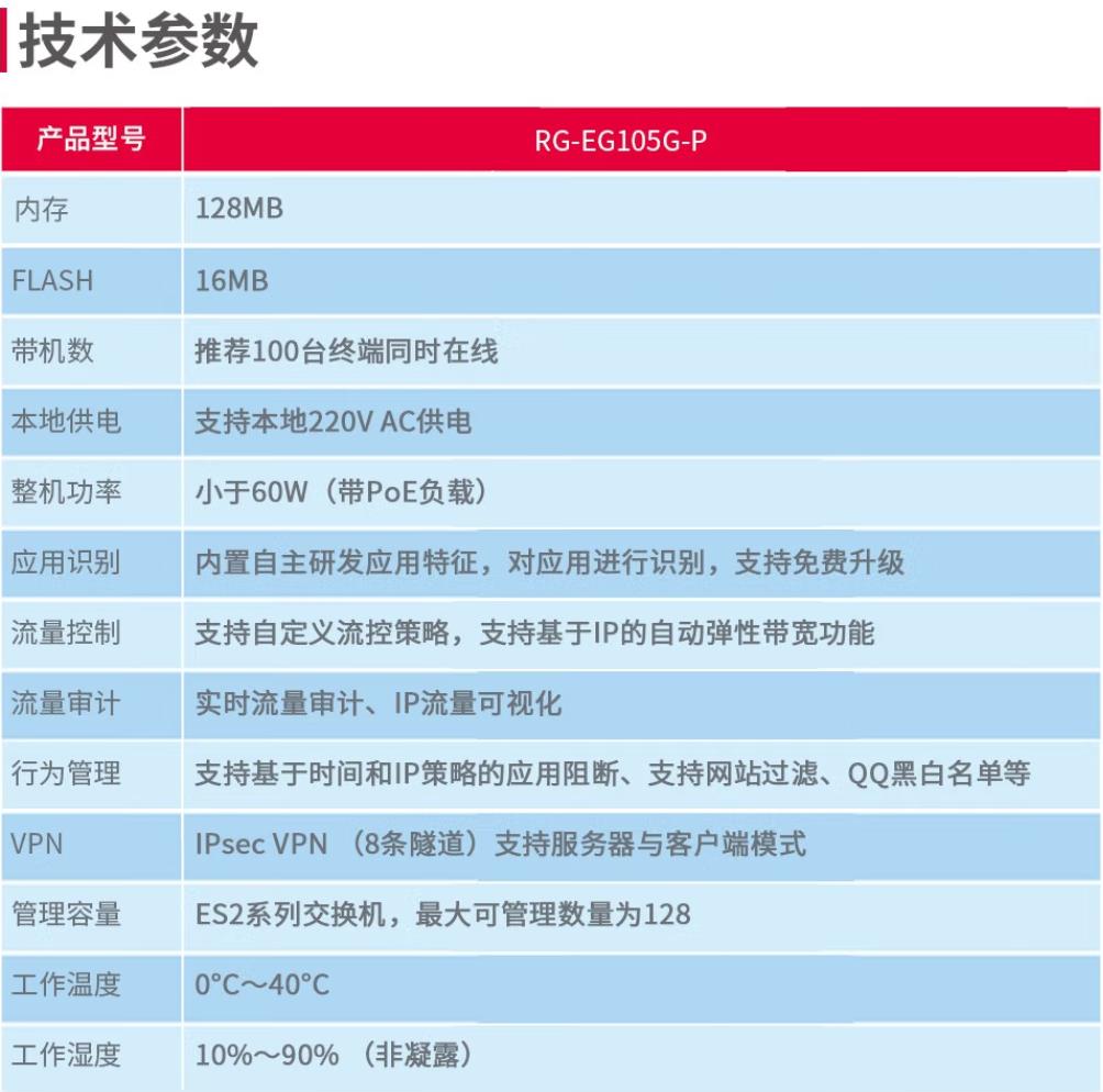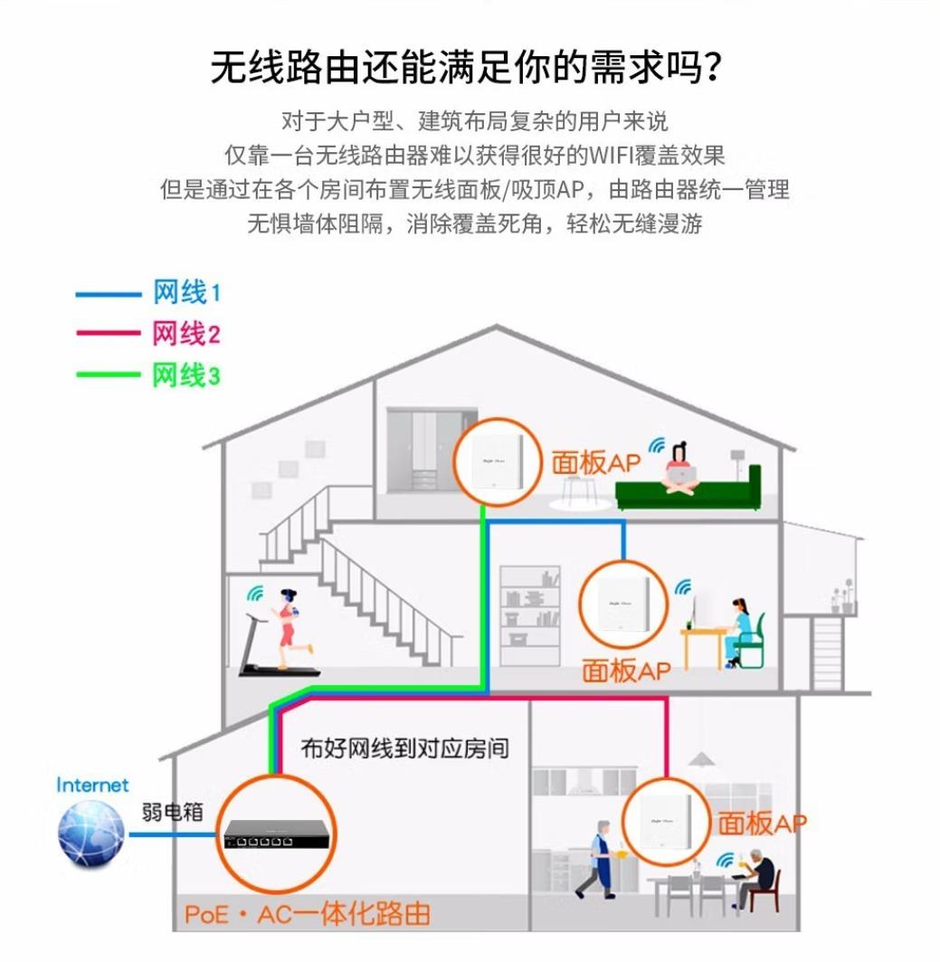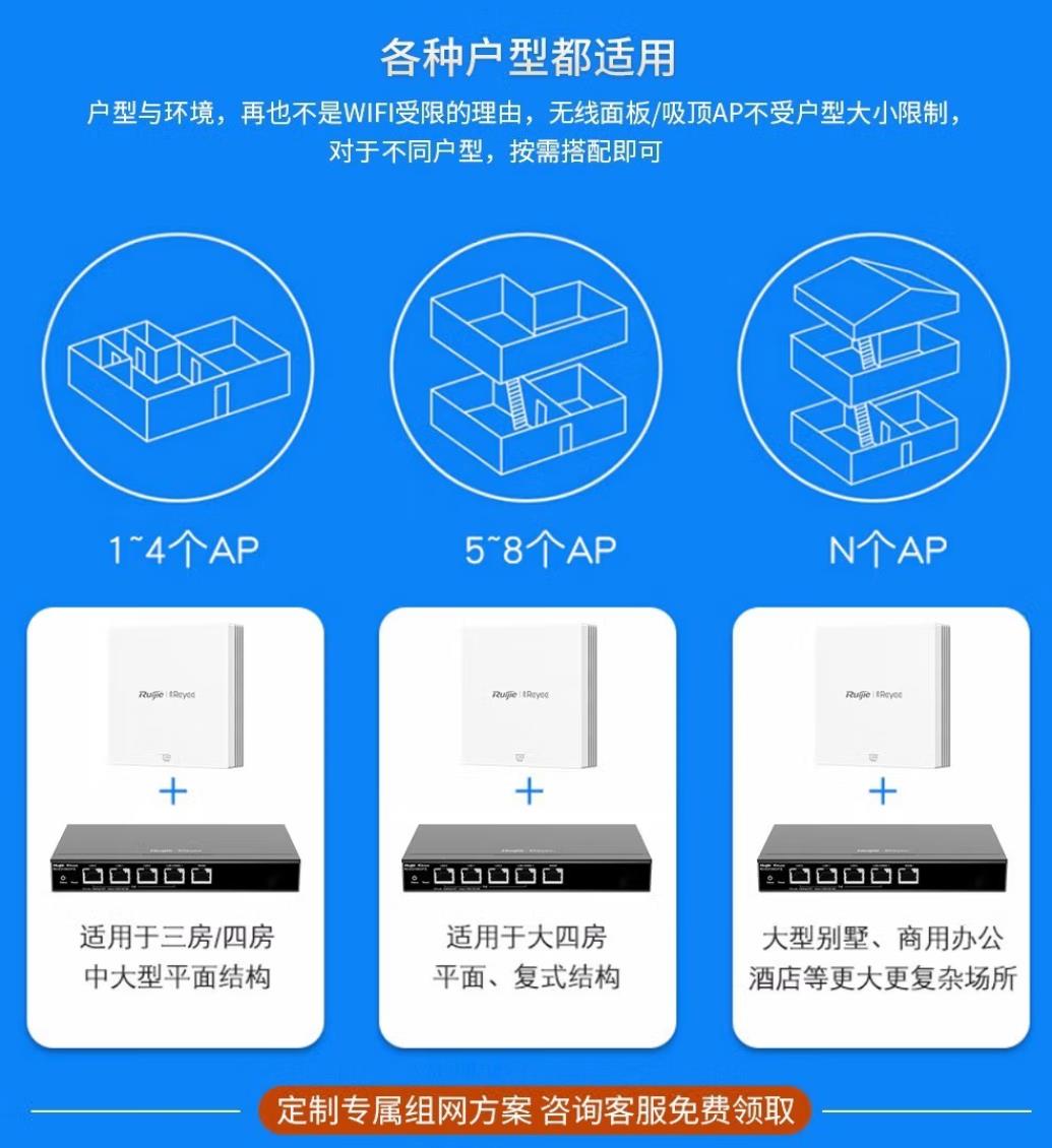 商品名称:锐捷(Ruijie) 无线ap全屋wifi RG-EG105G-P 5口一体机