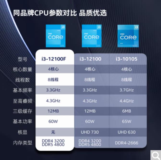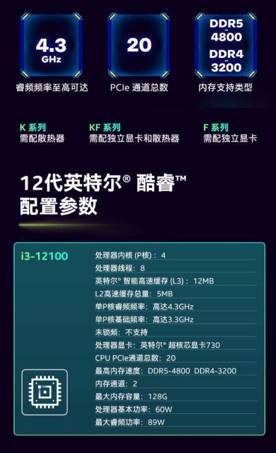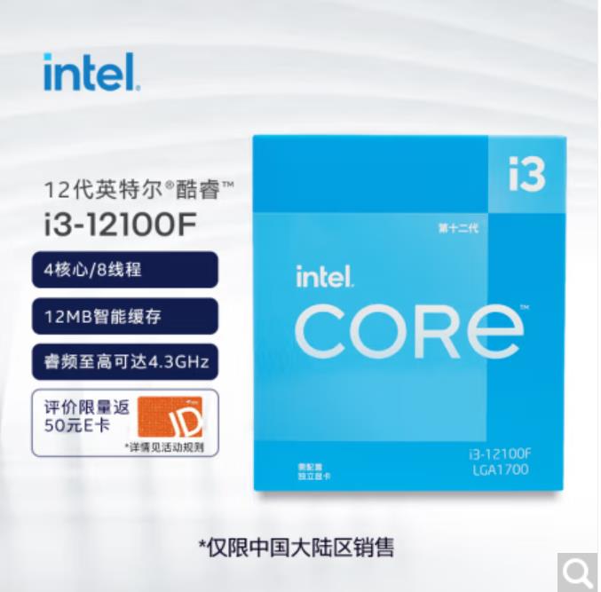 商品名称:英特尔酷睿I3 12100处理器12代酷睿