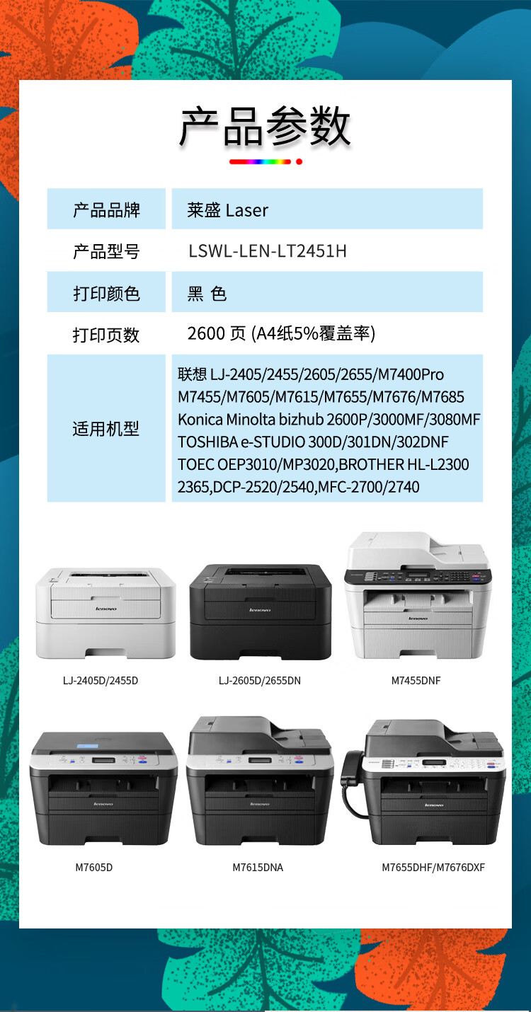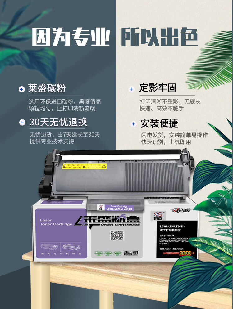 商品名称:莱盛LT2451H粉盒 适用联想M7400pro粉仓LJ2405D 2455D 2605D 2655DN M7455DNF M7605D M7615D