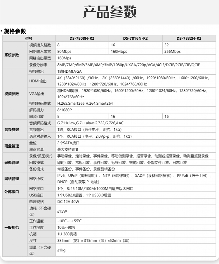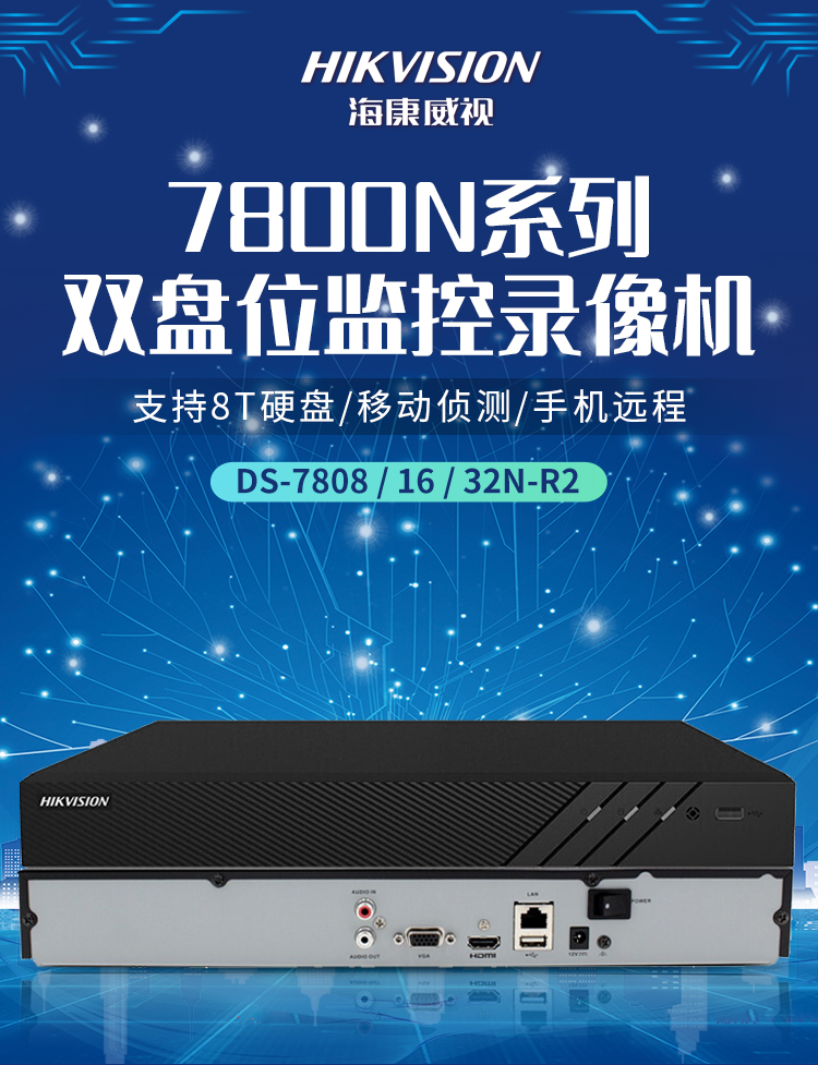 商品名称:海康威视全系列双盘硬盘录像机NVR网络监控主机