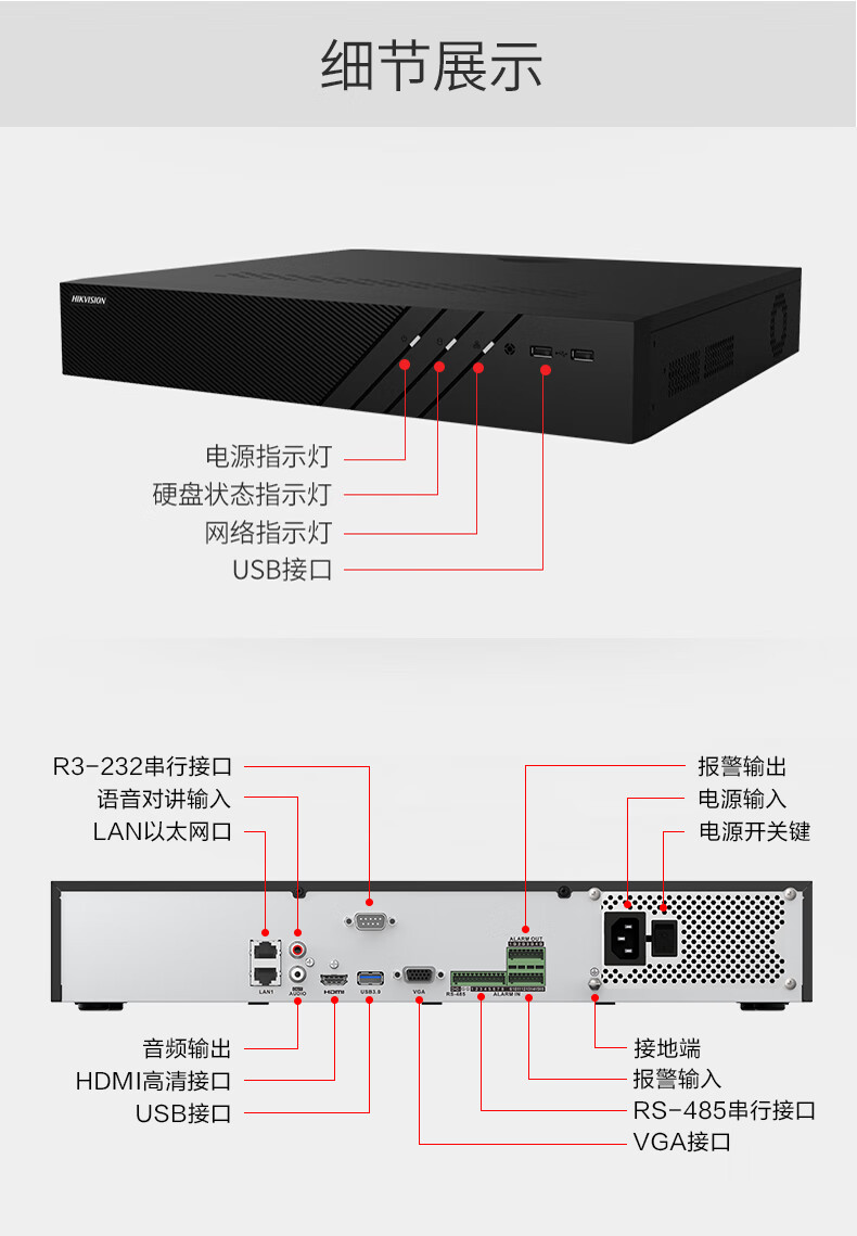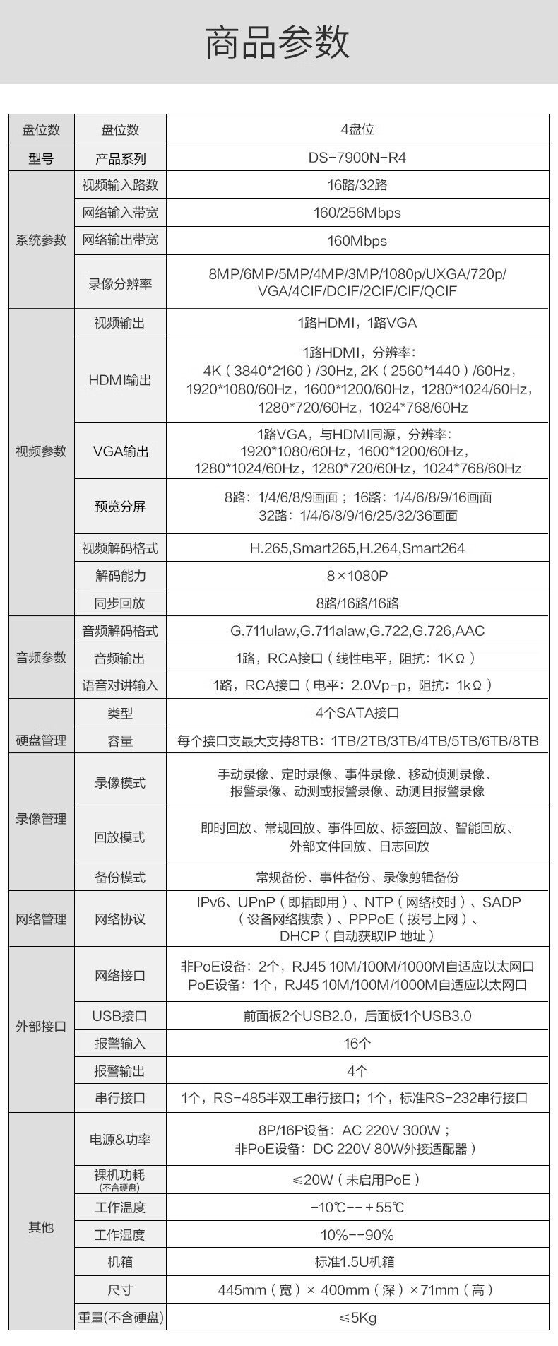 商品名称:海康威视 16/32路4盘位硬盘录像机NVR网络监控主机
